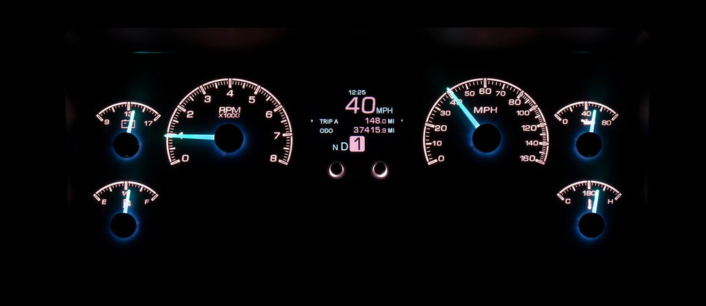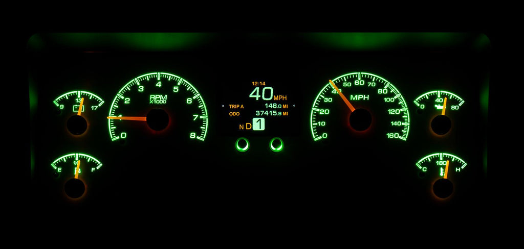 Dakota Digital HDX direct-fit analog gauge systems feature the latest in aftermarket automotive instrumentation technology. They take personalization and usability to a whole new dimension, while retaining your favorite features from the wildly popular VHX-Series, such as LED backlighting for the numbers, tick marks, and dead-faced dash indicators (turn signals, high beam, check engine, cruise control engaged, and parking brake). Illuminated needles and a lifetime warranty are still part of the deal as well. These features add up to clean, easy-to-read instrument systems in all conditions.