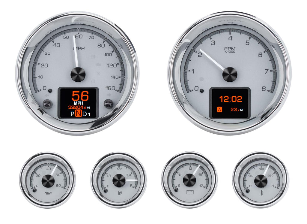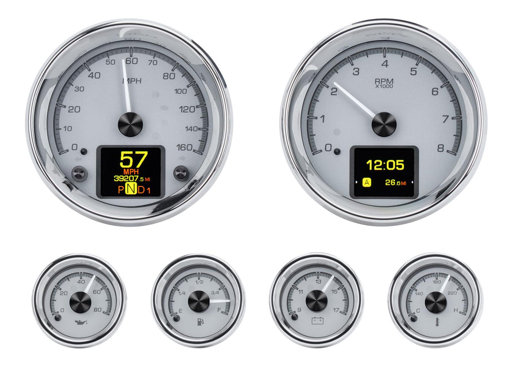 Dakota Digital HDX Series universal round analog gauge kits offer timeless appeal with the latest technology. This instrument series TFT message centers and shining bezels will fit perfectly into a great many applications. They're available with your choice of black or silver alloy gauge-face styling, with each allowing you to select independent illumination colors for the gauge readings and needles, as well as the message centers.