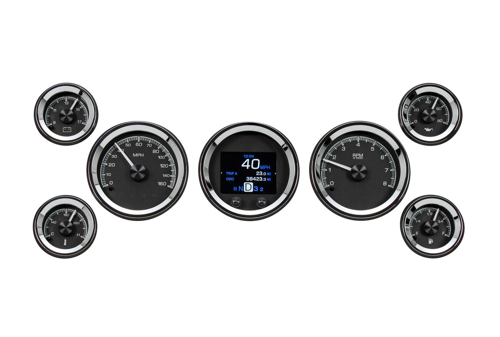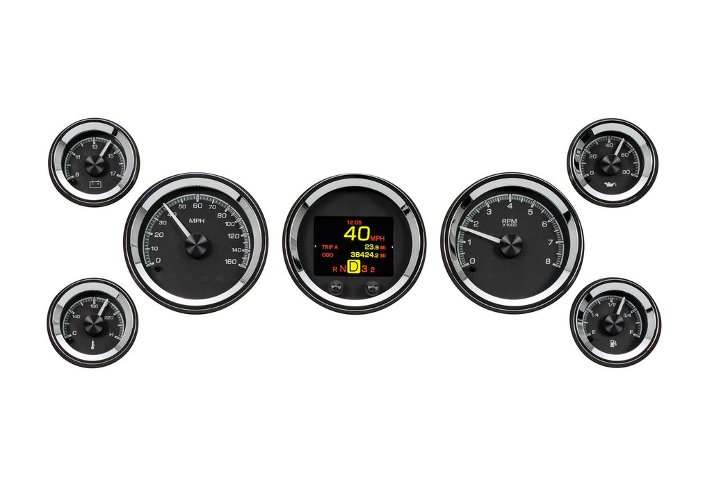 Dakota Digital HDX Series universal round analog gauge kits offer timeless appeal with the latest technology. This instrument series TFT message centers and shining bezels will fit perfectly into a great many applications. They're available with your choice of black or silver alloy gauge-face styling, with each allowing you to select independent illumination colors for the gauge readings and needles, as well as the message centers.