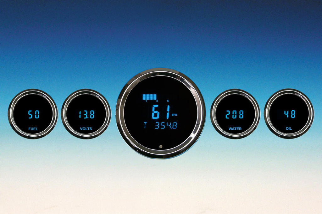 Odyssey Solarix digital gauge kits from Dakota Digital feature an accurate, crisp blue, vacuum florescent display with a bright blue backlit annunciator and an electric blue, chrome, or black bezel. These kits come available in a wide variety of standard and specialty styles. They feature scratch-resistant lenses and durable, machined billet aluminum housings to keep them looking and performing like new for many years to come!Brand: Dakota Digital