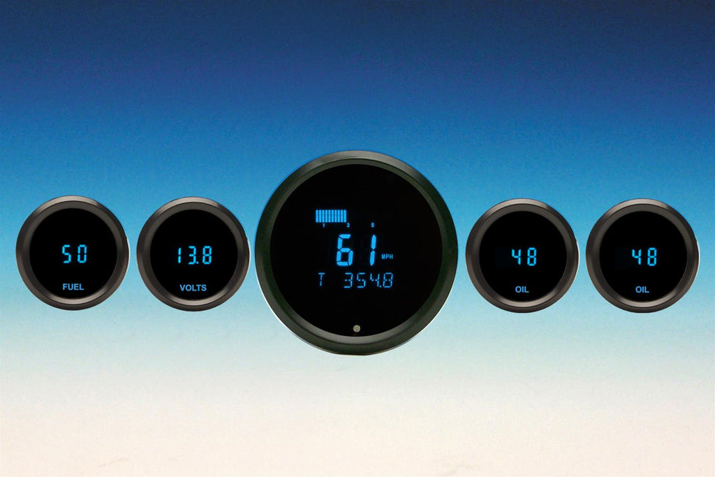 Odyssey Solarix digital gauge kits from Dakota Digital feature an accurate, crisp blue, vacuum florescent display with a bright blue backlit annunciator and an electric blue, chrome, or black bezel. These kits come available in a wide variety of standard and specialty styles. They feature scratch-resistant lenses and durable, machined billet aluminum housings to keep them looking and performing like new for many years to come!Brand: Dakota Digital