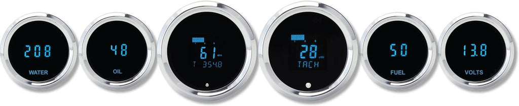 Odyssey Solarix digital gauge kits from Dakota Digital feature an accurate, crisp blue, vacuum florescent display with a bright blue backlit annunciator and an electric blue, chrome, or black bezel. These kits come available in a wide variety of standard and specialty styles. They feature scratch-resistant lenses and durable, machined billet aluminum housings to keep them looking and performing like new for many years to come!Brand: Dakota Digital