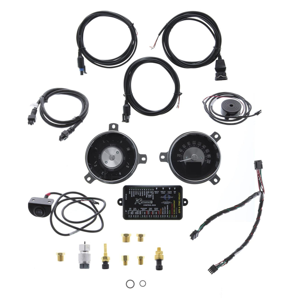 Dakota Digital RTX direct-fit gauge kits retain your classic vehicle's stock look without sacrificing the late-model features you love. Every effort was made to incorporate OEM design elements regarding the layout, face styling, and indicators. Starting from scratch, these CNC-machined cluster housings are filled with electronics that raise the bar--in fact, the high-def message centers can be configured to display just about any piece of information needed. The RTX Series utilizes a central control box to make installation and setup as easy as possible. Choose the model with gauges and features designed to fit your specific vehicle.Brand: Dakota Digital