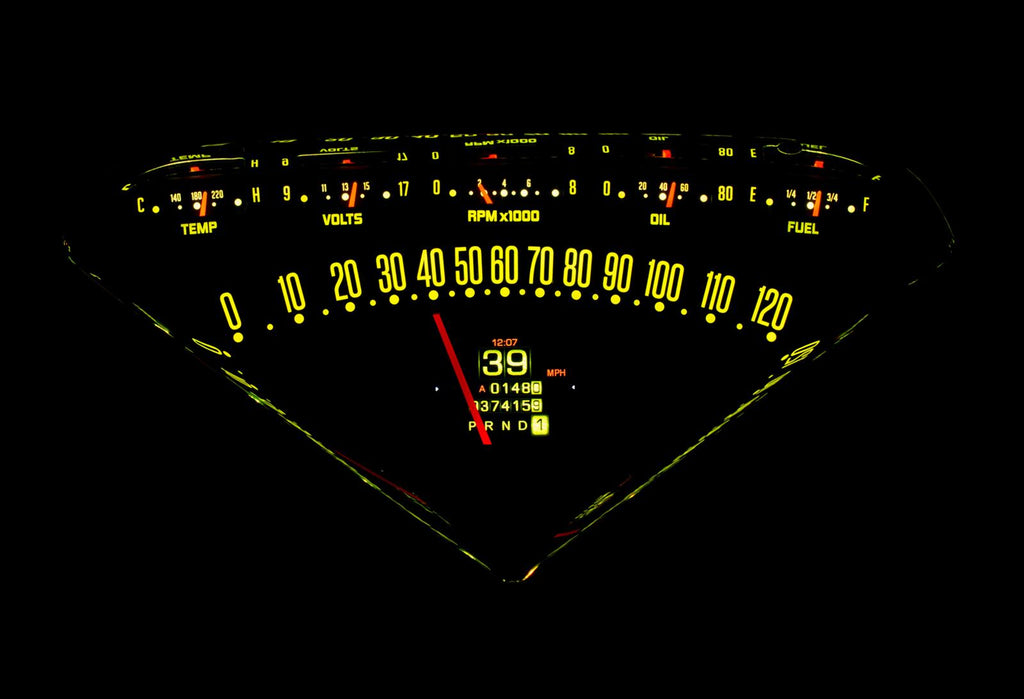 Notes: Has digital clock, trip, odometer, and gear selection.