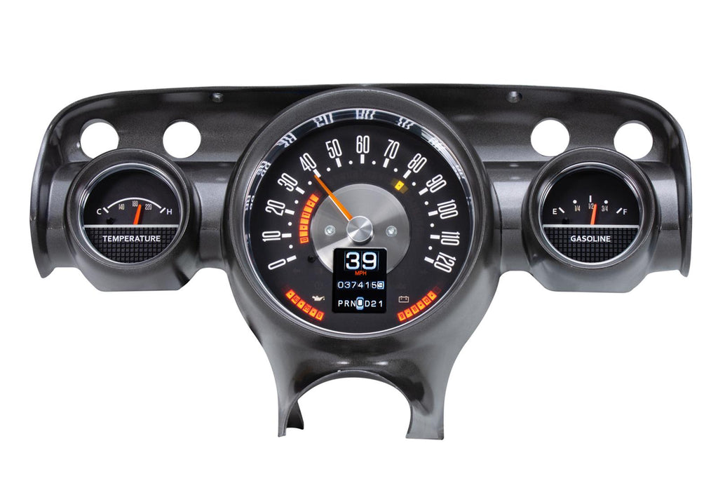 Dakota Digital RTX direct-fit gauge kits retain your classic vehicle's stock look without sacrificing the late-model features you love. Every effort was made to incorporate OEM design elements regarding the layout, face styling, and indicators. Starting from scratch, these CNC-machined cluster housings are filled with electronics that raise the bar--in fact, the high-def message centers can be configured to display just about any piece of information needed. The RTX Series utilizes a central control box to make installation and setup as easy as possible. Choose the model with gauges and features designed to fit your specific vehicle.Brand: Dakota Digital