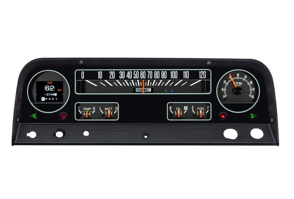 Dakota Digital RTX direct-fit gauge kits retain your classic vehicle's stock look without sacrificing the late-model features you love. Every effort was made to incorporate OEM design elements regarding the layout, face styling, and indicators. Starting from scratch, these CNC-machined cluster housings are filled with electronics that raise the bar--in fact, the high-def message centers can be configured to display just about any piece of information needed. The RTX Series utilizes a central control box to make installation and setup as easy as possible. Choose the model with gauges and features designed to fit your specific vehicle.Brand: Dakota Digital