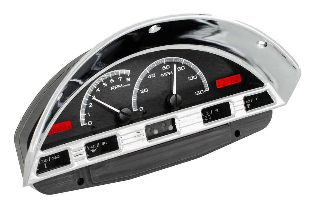Notes: Black alloy gauge face, numbers, and pointer illuminate red at night. Fits factory bezel, not included.