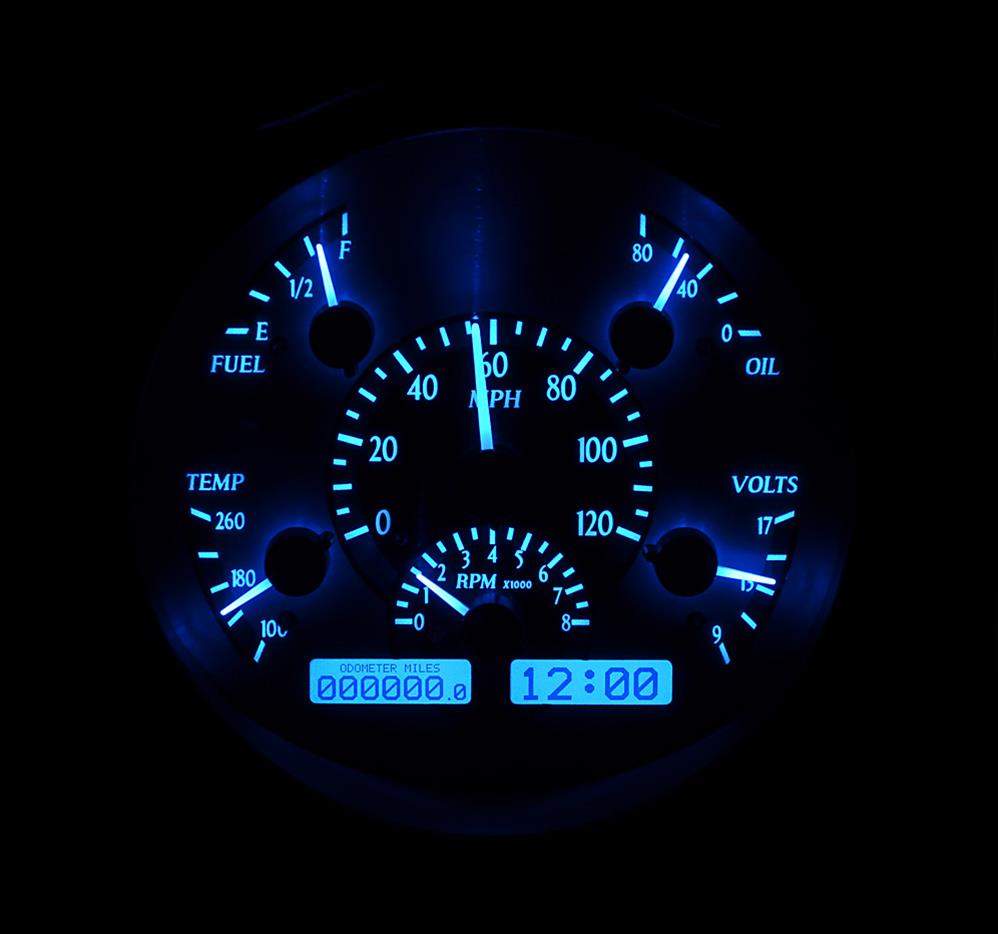Stay ahead of the curve with fresh instrumentation, like the Dakota Digital VHX direct-fit analog gauge systems. Ideal for classic car restorations, this innovative line features dozens of single dials, clusters, and multi-gauge panels, which install into your vintage ride with no modifications needed. We're talking units for various models of Ford, Chevy, Mercury, Oldsmobile, Jeep, Toyota, Buick, Pontiac, and Dodge … with new "replacements" available for cars and trucks as far back as 1932!