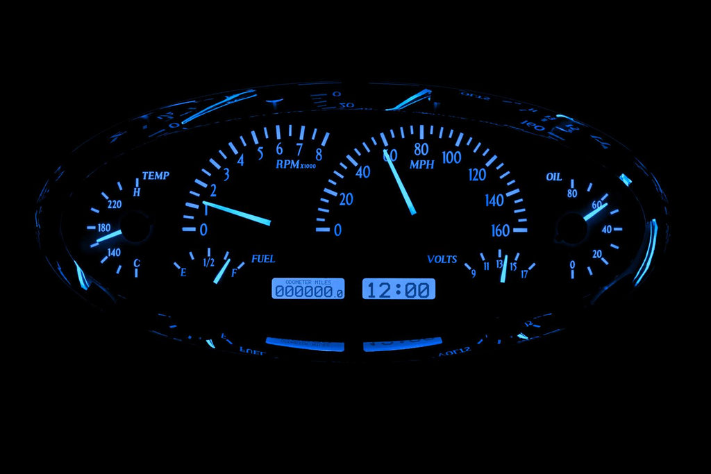 Gauge Face Color: Silver/Luminescent blue