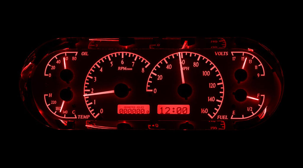 Gauge Face Color: Silver/Luminescent red