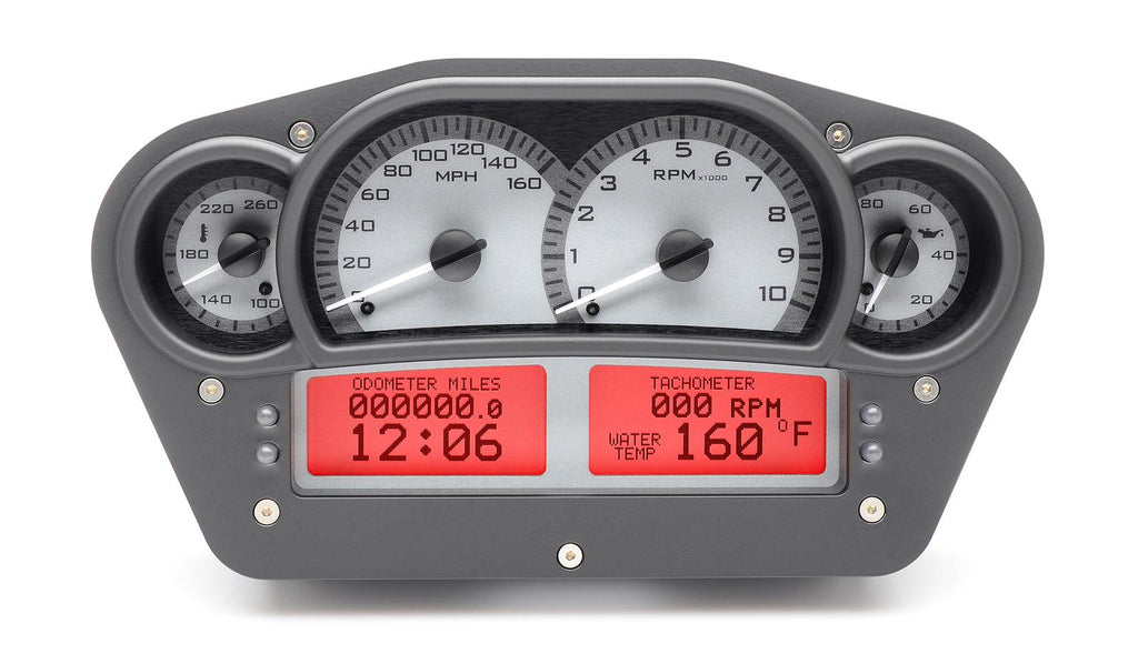 Dakota Digital VHX Series universal race-inspired analog gauge kits provide the best of the function of race gauges and the usability of street instrumentation. Fully lit needles, highly visible LCD message centers, and backlit faces set these kits apart from the traditional approach to instrumentation. A few of the features which you don't normally see are the solid-state sensors for unparalleled accuracy, micro-controlled precision stepper motors, and user-customizable display feedback. The four programmable, digital message centers allow for nearly unlimited expansion.Brand: Dakota Digital