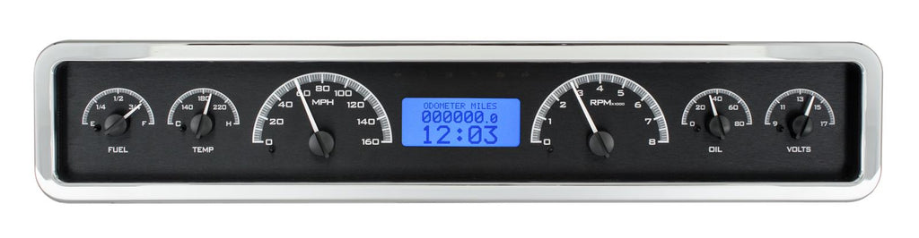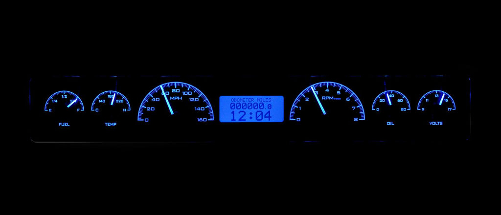 Bring your classic up to date with all-new instrumentation! Dakota Digital universal rectangle VHX Series analog gauge kits can add a unique look and informative panel to your dash configuration. These units include the following displays: water temperature, speedometer, tachometer, oil pressure, fuel level, and voltmeter. The message center features an odometer, trip odometer, clock, gear indicator, 0 to 60 timer, quarter-mile timer/speed, high-speed, and high-rpm recall (control module and required sensors are included). Dakota Digital analog gauge kits are offered in your choice of face finishes and illumination colors to freshen up the look of your ride's interior!Brand: Dakota Digital