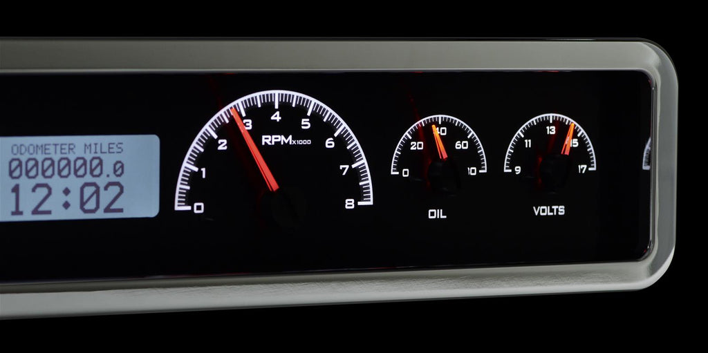 Bring your classic up to date with all-new instrumentation! Dakota Digital universal rectangle VHX Series analog gauge kits can add a unique look and informative panel to your dash configuration. These units include the following displays: water temperature, speedometer, tachometer, oil pressure, fuel level, and voltmeter. The message center features an odometer, trip odometer, clock, gear indicator, 0 to 60 timer, quarter-mile timer/speed, high-speed, and high-rpm recall (control module and required sensors are included). Dakota Digital analog gauge kits are offered in your choice of face finishes and illumination colors to freshen up the look of your ride's interior!Brand: Dakota Digital