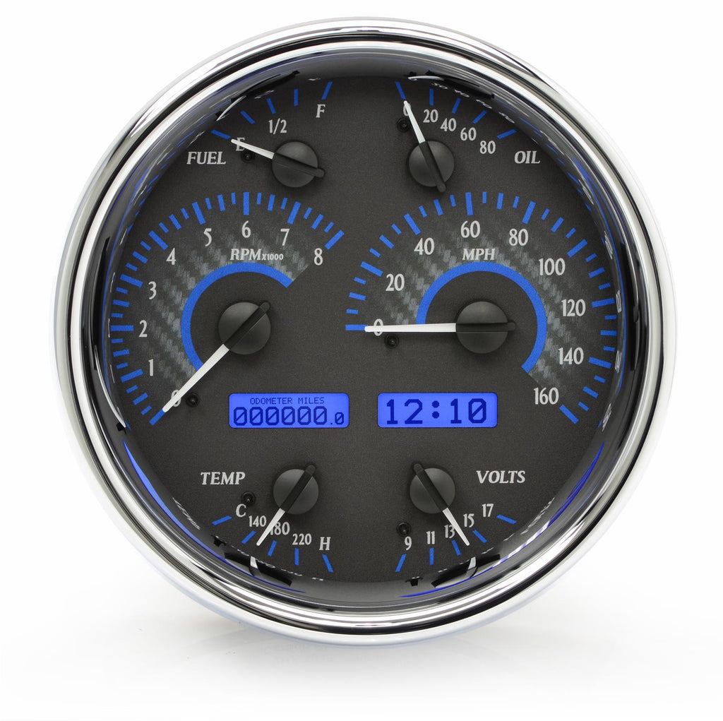 Dakota Digital universal round VHX Series analog gauge kits introduce a new look in a traditional layout. The circular gauge format has been a design staple for generations, allowing flexibility in nearly any type of vehicle--and this distinctive line offers vital information in a variety of configurations … from one single gauge, to a cluster of six! VHX dials provide accurate feedback on at least 20 automotive levels, speeds, and functions; and bringing the vintage dashboard displays into the 21st century are bright LCD message centers, backlit faces, and fully lit needles. These gauge kits are equally impressive behind the scenes, with solid-state sensors, precision stepper motors, and customizable data readouts. Choose the colors you prefer on the face and digits; everything will be encased in a chromed billet aluminum housing with polished bezel. Dakota Digital gauges have revolutionized the industry--just think what they'll do for your driving experience!Brand: Dakota Digital