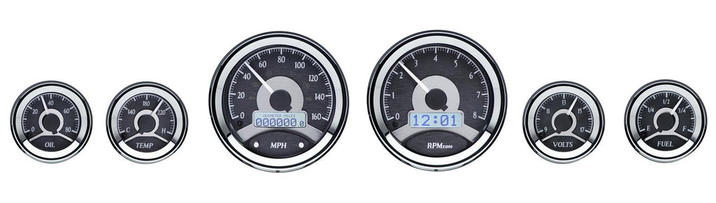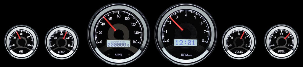 Dakota Digital universal round VHX Series analog gauge kits introduce a new look in a traditional layout. The circular gauge format has been a design staple for generations, allowing flexibility in nearly any type of vehicle--and this distinctive line offers vital information in a variety of configurations … from one single gauge, to a cluster of six! VHX dials provide accurate feedback on at least 20 automotive levels, speeds, and functions; and bringing the vintage dashboard displays into the 21st century are bright LCD message centers, backlit faces, and fully lit needles. These gauge kits are equally impressive behind the scenes, with solid-state sensors, precision stepper motors, and customizable data readouts. Choose the colors you prefer on the face and digits; everything will be encased in a chromed billet aluminum housing with polished bezel. Dakota Digital gauges have revolutionized the industry--just think what they'll do for your driving experience!Brand: Dakota Digital