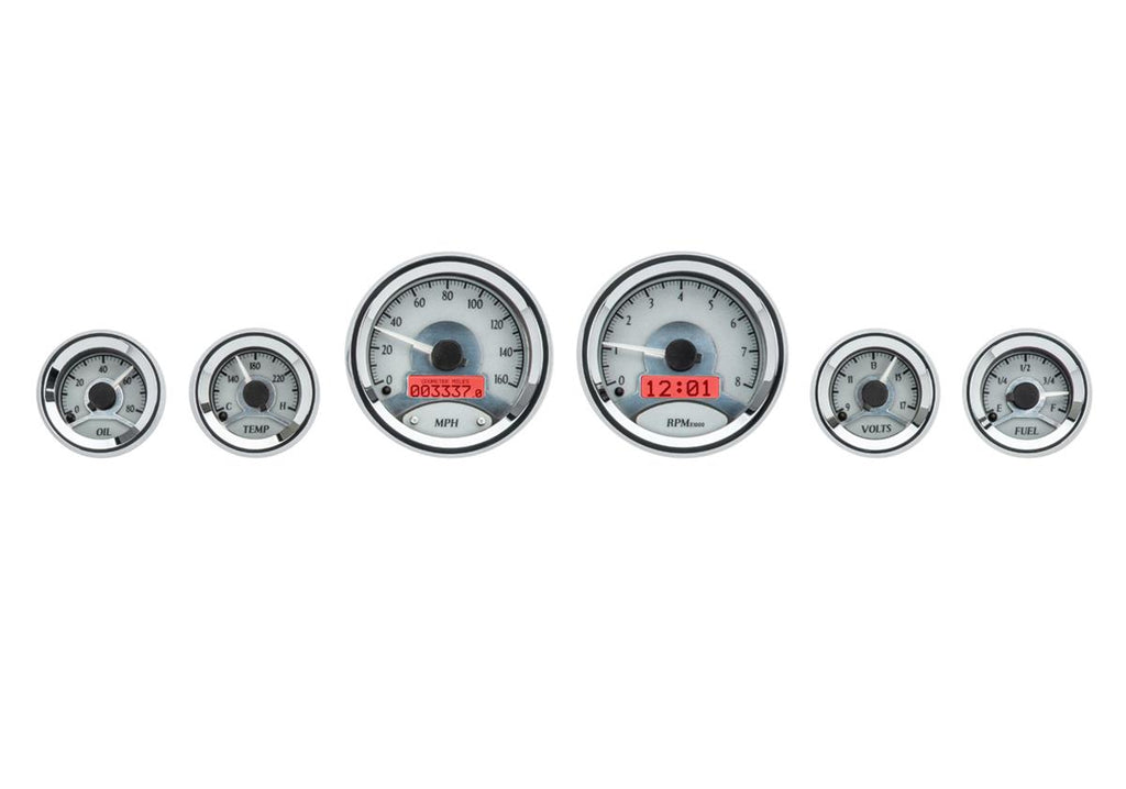 Dakota Digital universal round VHX Series analog gauge kits introduce a new look in a traditional layout. The circular gauge format has been a design staple for generations, allowing flexibility in nearly any type of vehicle--and this distinctive line offers vital information in a variety of configurations … from one single gauge, to a cluster of six! VHX dials provide accurate feedback on at least 20 automotive levels, speeds, and functions; and bringing the vintage dashboard displays into the 21st century are bright LCD message centers, backlit faces, and fully lit needles. These gauge kits are equally impressive behind the scenes, with solid-state sensors, precision stepper motors, and customizable data readouts. Choose the colors you prefer on the face and digits; everything will be encased in a chromed billet aluminum housing with polished bezel. Dakota Digital gauges have revolutionized the industry--just think what they'll do for your driving experience!Brand: Dakota Digital