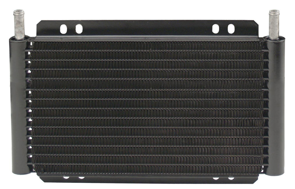 Derale 8000 Series fin and plate transmission coolers are designed for late model electronic overdrive transmissions. They feature 3/4 in. wide embossed turbulator plates to minimize pressure drops and sturdy, furnace-brazed aluminum construction. These Derale Performance units come complete with a mounting and installation kit.Brand: Derale Cooling Products
