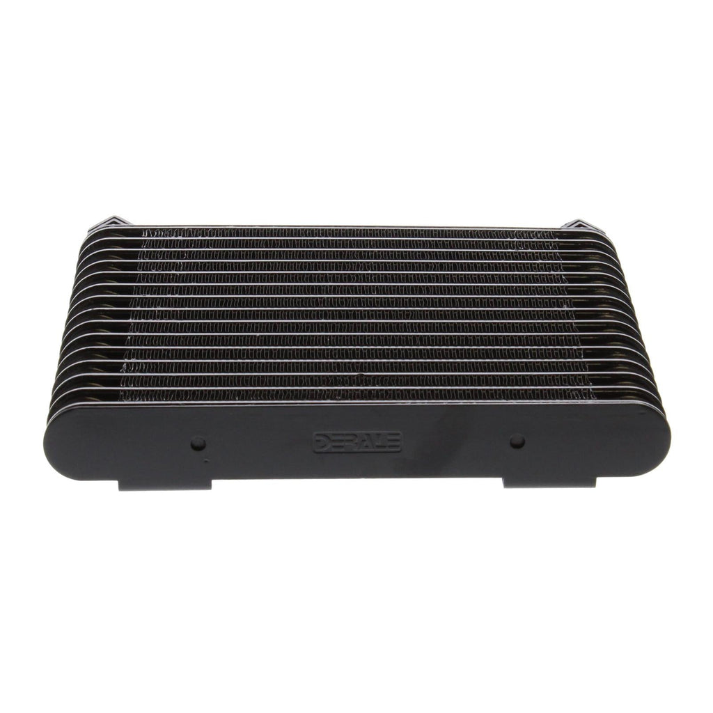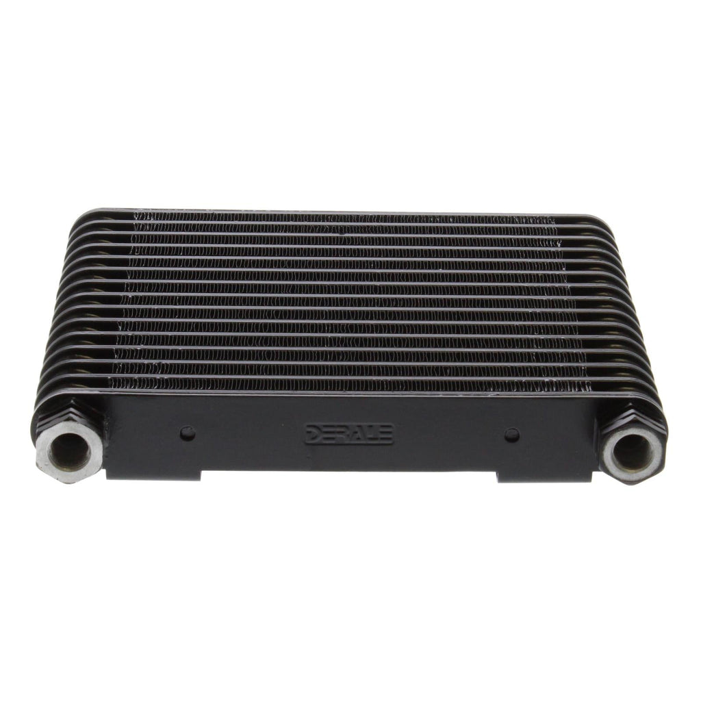 Derale 9000 Series fin and plate transmission coolers are designed with 1 1/4 in. wide turbulator plates to maximize cooling and minimize pressure drops. They also feature sturdy furnace-brazed aluminum construction, and 6 AN inlets with hose barb adapters. Outstanding protection for your vehicle's key components--that's the job of Derale Performance!Brand: Derale Cooling Products