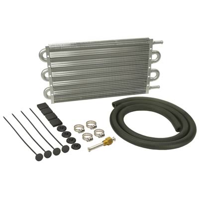 Give your transmission longer life with Derale Dyno-Cool transmission coolers. These Series 6000 tube and fin cooler kits are universal all-aluminum models that prevent heat-related component failure and fluid breakdown. Derale Dyno-Coolers feature embossed turbulators inside each tube that agitate fluid for maximum heat transfer and improved shift performance. Coolers are available in several sizes to fit everything from sub-compact cars and mini trucks to full size vehicles. Give your stressed-out automatic transmission better performance--keep it cooler with Derale Performance Dyno-Cool transmission coolers.Brand: Derale Cooling Products