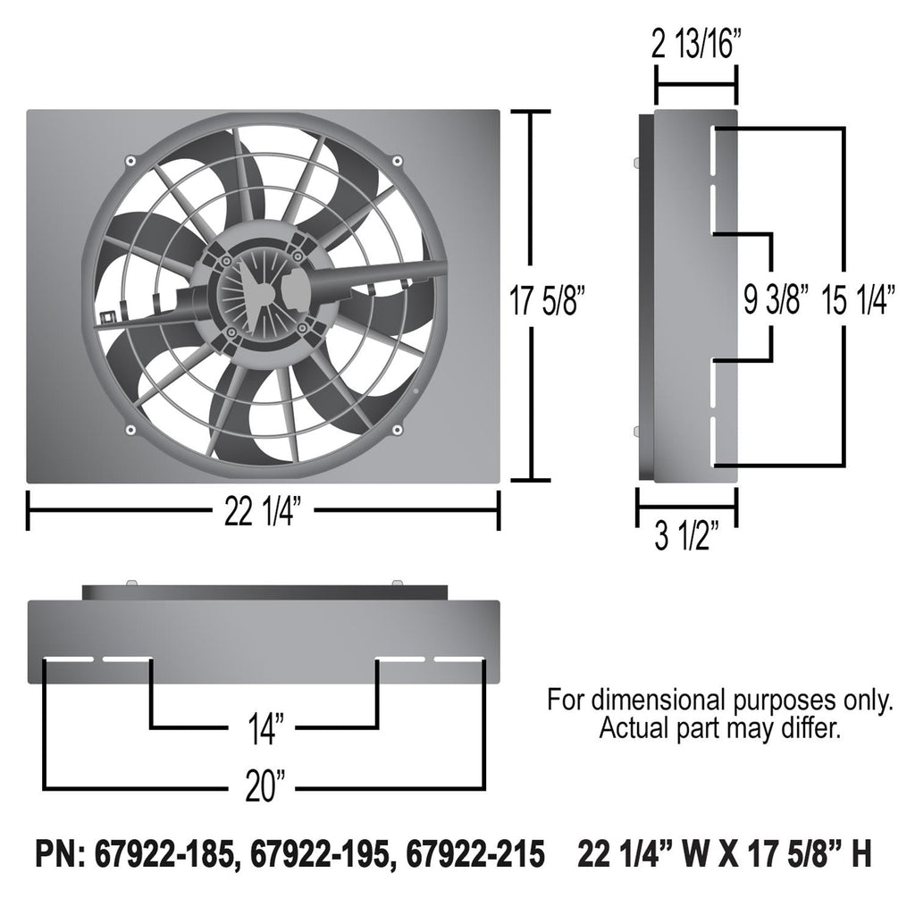 Get complete control of your engine temperature! Derale has combined their high-performing shrouded brushless Powerpacks with the ultimate fan controller. Using a brushless electric fan incorporated into an engineered shroud, this Powerpack can conquer even the most difficult cooling conditions. The PWM fan controller comes with built-in soft start technology. The controller utilizes Pulse Width Modulation to constantly adjust electric fan speeds from 0-100%, to maintain 185 °F temperature. No more reacting to the engine temps, you can control it! This allows the 17" brushless electric fan to operate at the percentage needed, instead of 100% all the time, therefore increasing component life and eliminating amperage spikes.Brand: Derale Cooling Products
