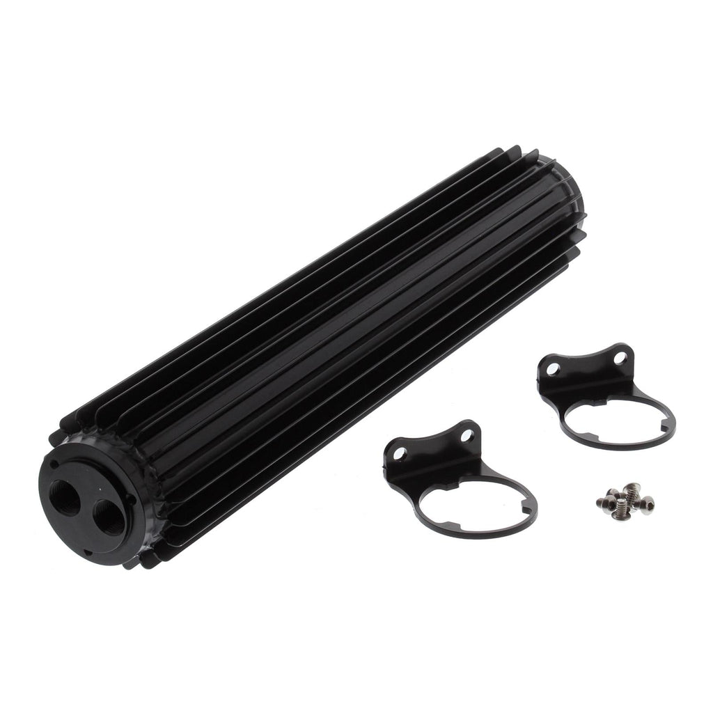 The internal and external cooling fins in these new Derale heat sink fluid coolers provide maximum cooling efficiency without relying on direct airflow. Their compact diameter means that they can be mounted in a variety of locations, such as on the frame rail next to the transmission, directly under the radiator, under the floorboards, etc. The rugged aluminum extrusion features welded ends for long service life, in even the toughest environments. Derale Performance coolers are offered in several lengths with 3/8 in. inlets.Brand: Derale Cooling Products