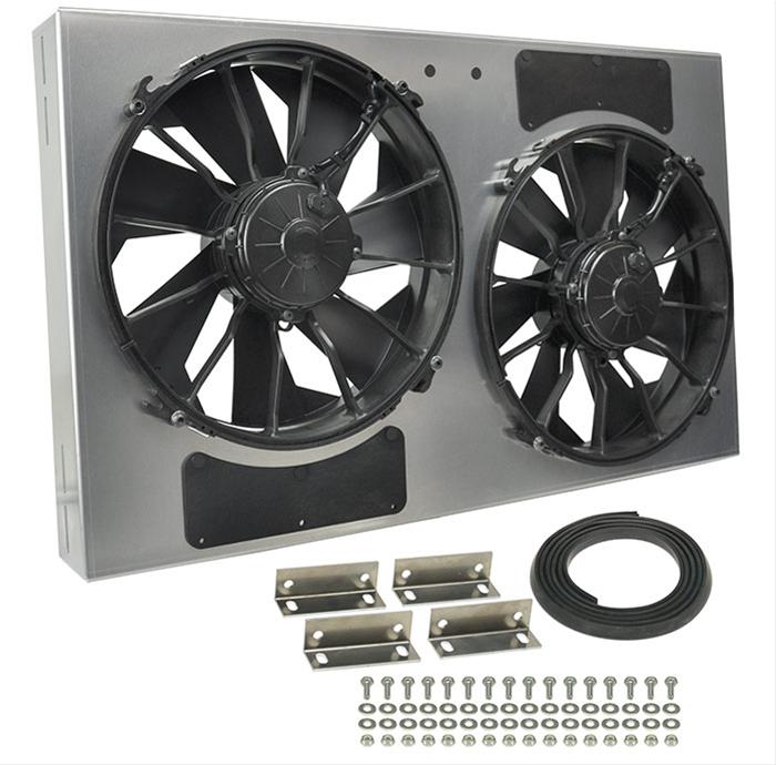 Derale high-output dual RAD fan and shroud kits are designed to provide maximum cooling performance at high static-pressure loads. Featuring high output 265 watt motors and an ultra-quiet, patented, skewed-blade design, these powerful dual primary cooling fan and shroud kits eliminate the need for fuel and horsepower-robbing, belt-driven fans. Derale Performance high-output dual RAD fan and shroud kits include a mounting kit and illustrated installation instructions.Brand: Derale Cooling Products