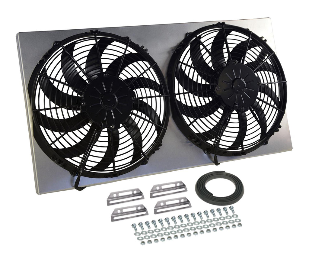 Derale high-output dual RAD fan and shroud kits are designed to provide maximum cooling performance at high static-pressure loads. Featuring high output 265 watt motors and an ultra-quiet, patented, skewed-blade design, these powerful dual primary cooling fan and shroud kits eliminate the need for fuel and horsepower-robbing, belt-driven fans. Derale Performance high-output dual RAD fan and shroud kits include a mounting kit and illustrated installation instructions.Brand: Derale Cooling Products