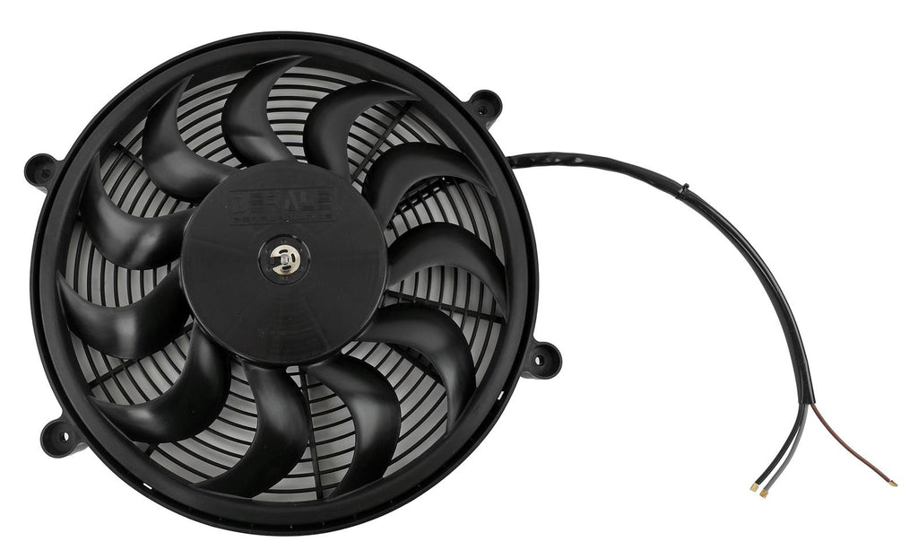 Derale high-output single RAD fans feature a versatile, state-of-the-art symmetrical design; high-output, 265-watt, 2-speed motors (where applicable); and ultra-quiet, patented skewed blades for maximum airflow. Derale Performance offers these fans in a variety of sizes in standard (push-through plastic rod mount) and premium (patented ratchet mount) styles.Brand: Derale Cooling Products
