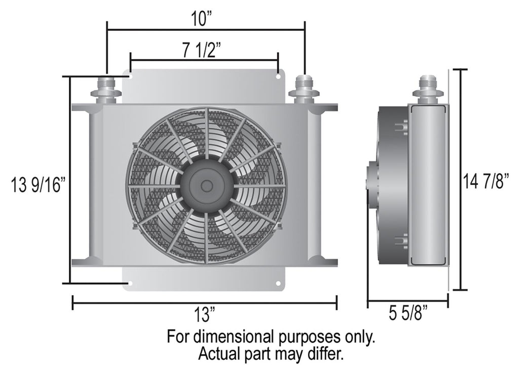 Derale Hyper-Cool Extreme remote fluid coolers feature a highly efficient 40-row stacked plate core that is pressure tested to 250 psi. They have a powerful 150-watt waterproof and dustproof 800 cfm electric fan installed directly to them by using the included clear anodized aluminum shroud. The shroud also acts as their mounting bracket for quick easy installation. Derale Performance Hyper-Cool Extreme remote fluid coolers with fan are available with your choice of male threaded AN ends, choose between -6AN, -8AN, -10AN, or -12AN and get your oil cooled down quicker.Brand: Derale Cooling Products