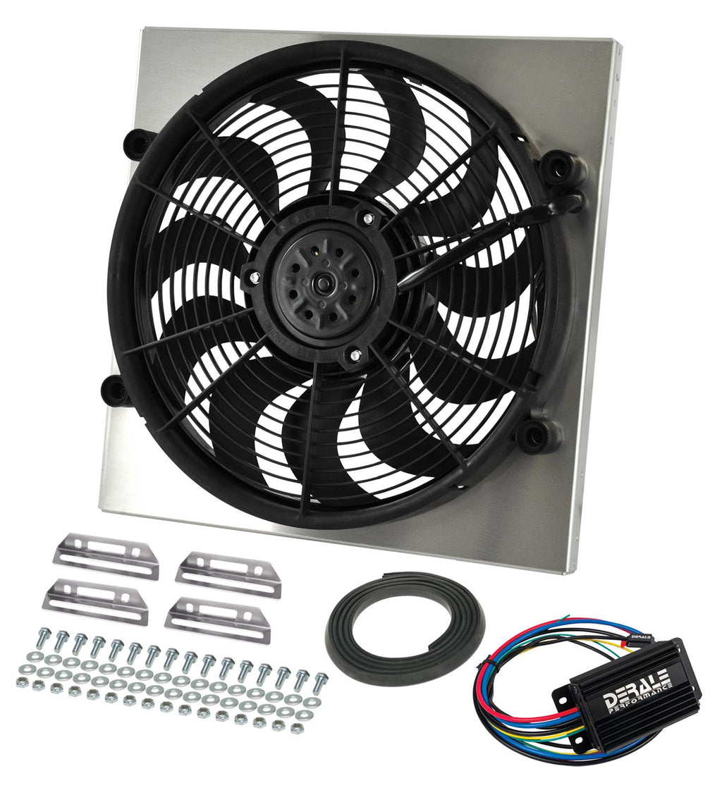 Get complete control of your engine temperature! Derale PWM electric fan Powerpacks have integrated their high-performing PWM fan controllers into the fan units. The PWM fan controller features built-in soft start technology and utilizes pulse width modulation to constantly adjust electric fan speeds from 0-100%. This maintains the optimal engine operating temperature while allowing the fans to operate at the percentage needed, instead of 100% all the time. By using the fans at the percentage needed component life is increased and amperage spikes are eliminated. The Powerpacks use high output electric fans incorporated into precision engineered shrouds. The Derale Performance Powerpacks are available with single or dual fans and can conquer the most difficult cooling conditions.Brand: Derale Cooling Products