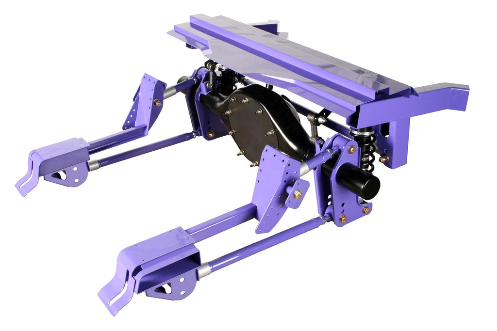 Detroit Speed QUADRALink rear suspension kits offer 4-link geometry for the best possible handling. These kits are a great way to upgrade from your original leaf spring suspension. They feature Detroit Speed's patented Swivel-Link that allows the suspension to fully articulate with smooth, solid motion and no binding—and it's done without Heim joints! QUADRALink uses tuned high-Durometer rubber bushings, rather than noisy, short-life Heim joints or squeaky urethane bushings. Plus, unlike other kits, these suspensions utilize an adjustable panhard rod that provides precise and effective rear axle lateral location during hard cornering. The long upper links provide great pinion and U-joint angle control, while the rear upper shock crossmember strengthens the rear body and frame section. QUADRALink rear suspension kits are available for a variety of specific vehicle applications; select the model to enhance your ride!