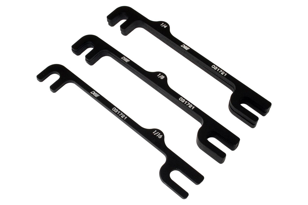 Notes: Includes four 1/16 in., four 1/8 in., and two 1/4 in. shims.