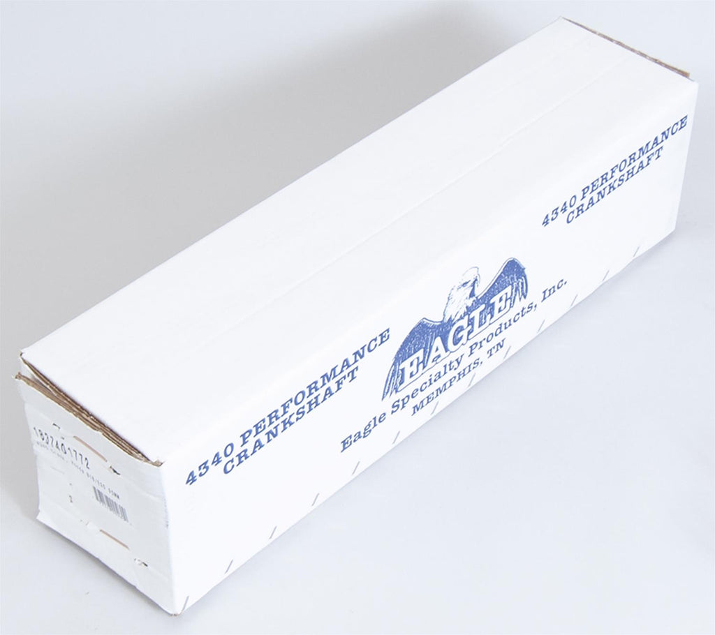 Eagle forged 4340 steel crankshafts are great for high performance applications. They feature non-twist forging, undergo a multi-stage heat-treatment process, and are stress-relieved and shot-peened. These cranks are X-rayed, magnafluxed, and sonic-tested, so you know you're getting a top-quality piece. Each crankshaft has chamfered oil holes for improved oiling, a .125 in. radius on rod and main journals for increased strength, and the journals are precision-ground and micro-polished to less than 5 R.A. A target bob weight of +/- 2 percent greatly reduces balancing time. Many options are available; order the model recommended for your year/make and engine application.Brand: Eagle Specialty Products