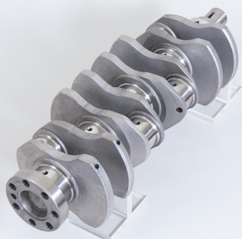 Eagle forged 4340 steel crankshafts are great for high performance applications. They feature non-twist forging, undergo a multi-stage heat-treatment process, and are stress-relieved and shot-peened. These cranks are X-rayed, magnafluxed, and sonic-tested, so you know you're getting a top-quality piece. Each crankshaft has chamfered oil holes for improved oiling, a .125 in. radius on rod and main journals for increased strength, and the journals are precision-ground and micro-polished to less than 5 R.A. A target bob weight of +/- 2 percent greatly reduces balancing time. Many options are available; order the model recommended for your year/make and engine application.Brand: Eagle Specialty Products