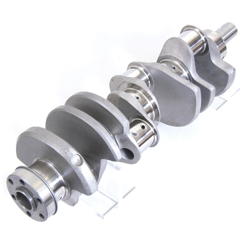 Eagle forged 4340 steel crankshafts are great for high performance applications. They feature non-twist forging, undergo a multi-stage heat-treatment process, and are stress-relieved and shot-peened. These cranks are X-rayed, magnafluxed, and sonic-tested, so you know you're getting a top-quality piece. Each crankshaft has chamfered oil holes for improved oiling, a .125 in. radius on rod and main journals for increased strength, and the journals are precision-ground and micro-polished to less than 5 R.A. A target bob weight of +/- 2 percent greatly reduces balancing time. Many options are available; order the model recommended for your year/make and engine application.Brand: Eagle Specialty Products