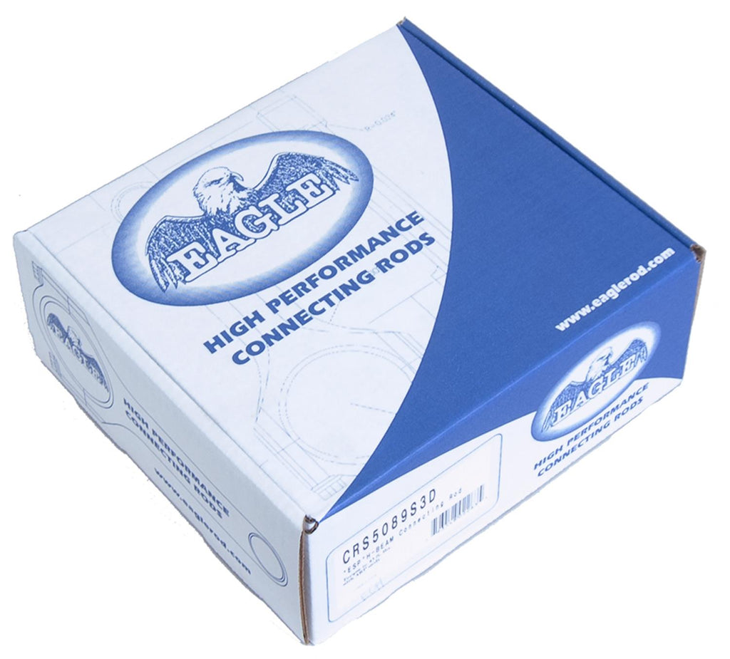Free your engine's horsepower on the wings of Eagle H-beam connecting rods. Their 2-piece, forged, vacuum-degassed, 4340-certified steel construction provides outstanding strength, while still weighing much less than stock rods. Each rod is multi-stage heat-treated, X-rayed, sonic-tested, magnafluxed, 100 percent machined, and then shot-peened to stress-relieve the metal.