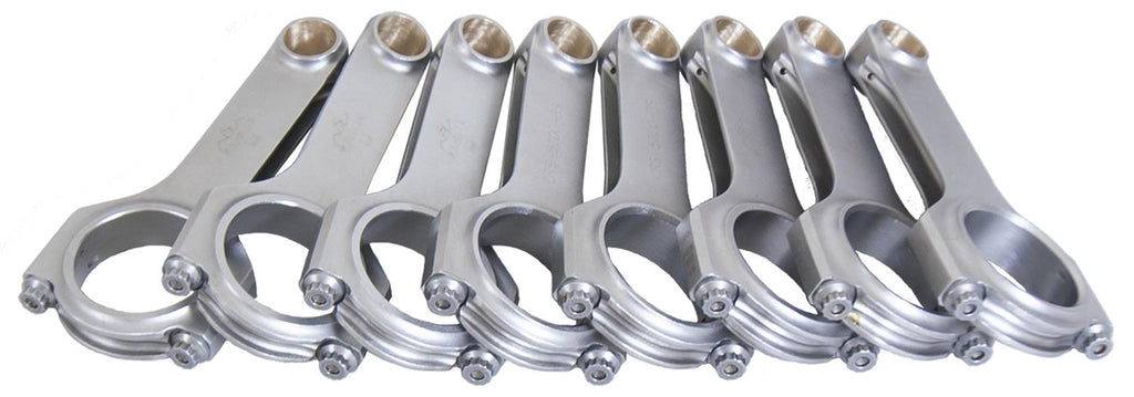 Free your engine's horsepower on the wings of Eagle H-beam connecting rods. Their 2-piece, forged, vacuum-degassed, 4340-certified steel construction provides outstanding strength, while still weighing much less than stock rods. Each rod is multi-stage heat-treated, X-rayed, sonic-tested, magnafluxed, 100 percent machined, and then shot-peened to stress-relieve the metal.