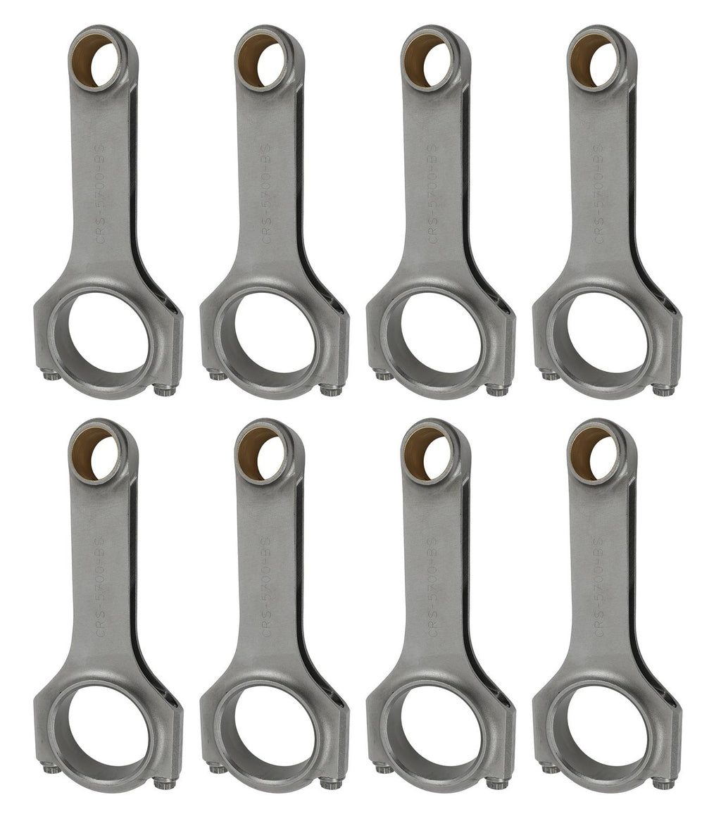 Free your engine's horsepower on the wings of Eagle H-beam connecting rods. Their 2-piece, forged, vacuum-degassed, 4340-certified steel construction provides outstanding strength, while still weighing much less than stock rods. Each rod is multi-stage heat-treated, X-rayed, sonic-tested, magnafluxed, 100 percent machined, and then shot-peened to stress-relieve the metal.