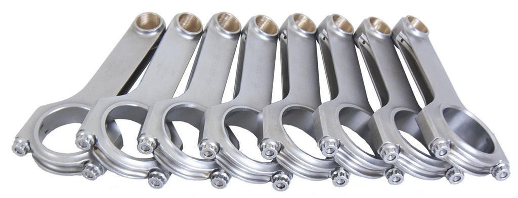 Free your engine's horsepower on the wings of Eagle H-beam connecting rods. Their 2-piece, forged, vacuum-degassed, 4340-certified steel construction provides outstanding strength, while still weighing much less than stock rods. Each rod is multi-stage heat-treated, X-rayed, sonic-tested, magnafluxed, 100 percent machined, and then shot-peened to stress-relieve the metal.