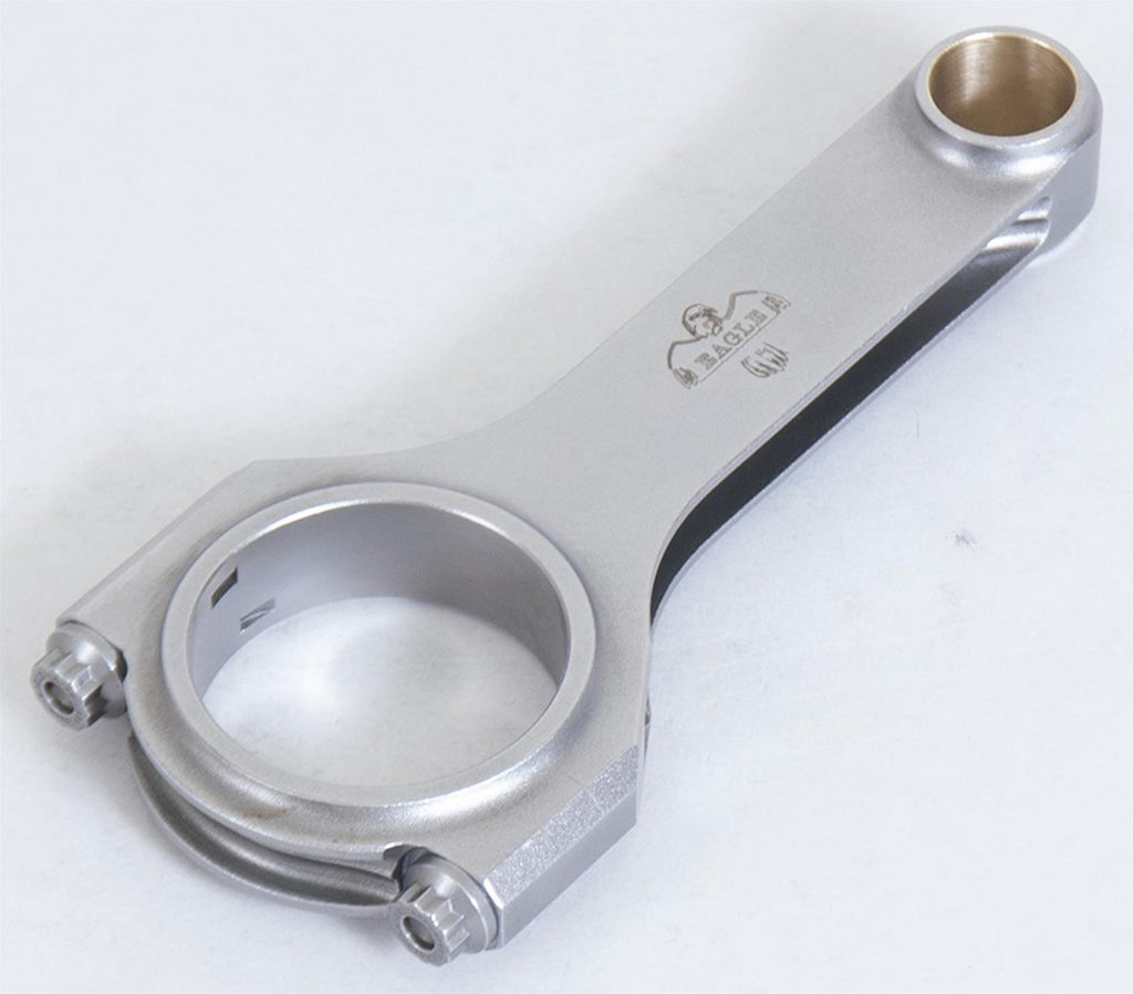 Free your engine's horsepower on the wings of Eagle H-beam connecting rods. Their 2-piece, forged, vacuum-degassed, 4340-certified steel construction provides outstanding strength, while still weighing much less than stock rods. Each rod is multi-stage heat-treated, X-rayed, sonic-tested, magnafluxed, 100 percent machined, and then shot-peened to stress-relieve the metal.