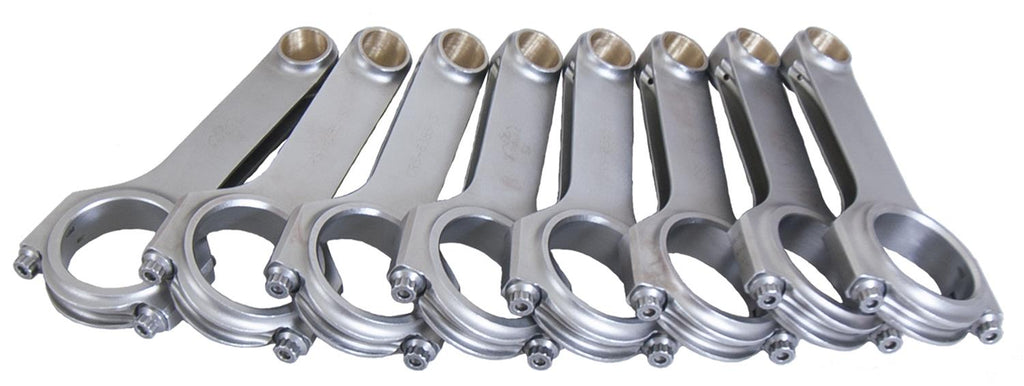 Free your engine's horsepower on the wings of Eagle H-beam connecting rods. Their 2-piece, forged, vacuum-degassed, 4340-certified steel construction provides outstanding strength, while still weighing much less than stock rods. Each rod is multi-stage heat-treated, X-rayed, sonic-tested, magnafluxed, 100 percent machined, and then shot-peened to stress-relieve the metal.