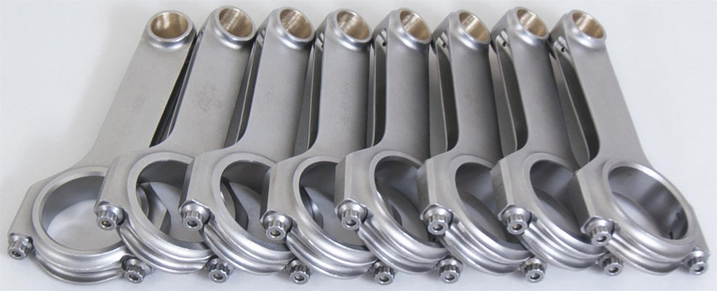 Free your engine's horsepower on the wings of Eagle H-beam connecting rods. Their 2-piece, forged, vacuum-degassed, 4340-certified steel construction provides outstanding strength, while still weighing much less than stock rods. Each rod is multi-stage heat-treated, X-rayed, sonic-tested, magnafluxed, 100 percent machined, and then shot-peened to stress-relieve the metal.