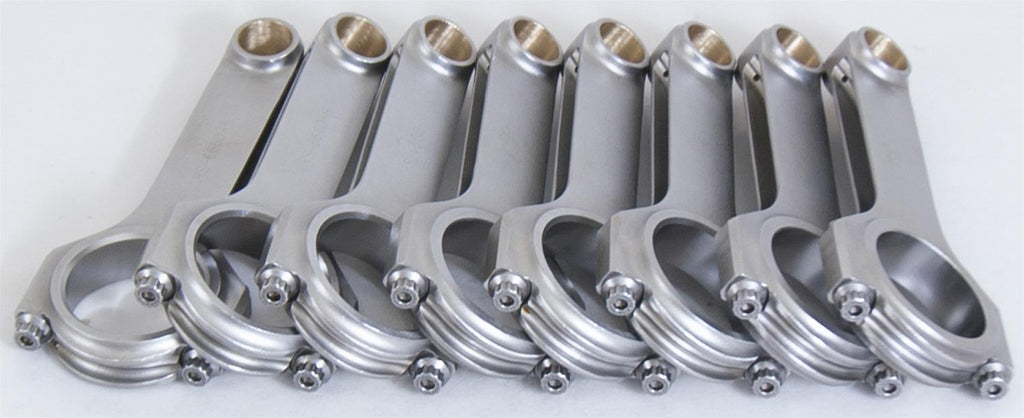 Free your engine's horsepower on the wings of Eagle H-beam connecting rods. Their 2-piece, forged, vacuum-degassed, 4340-certified steel construction provides outstanding strength, while still weighing much less than stock rods. Each rod is multi-stage heat-treated, X-rayed, sonic-tested, magnafluxed, 100 percent machined, and then shot-peened to stress-relieve the metal.