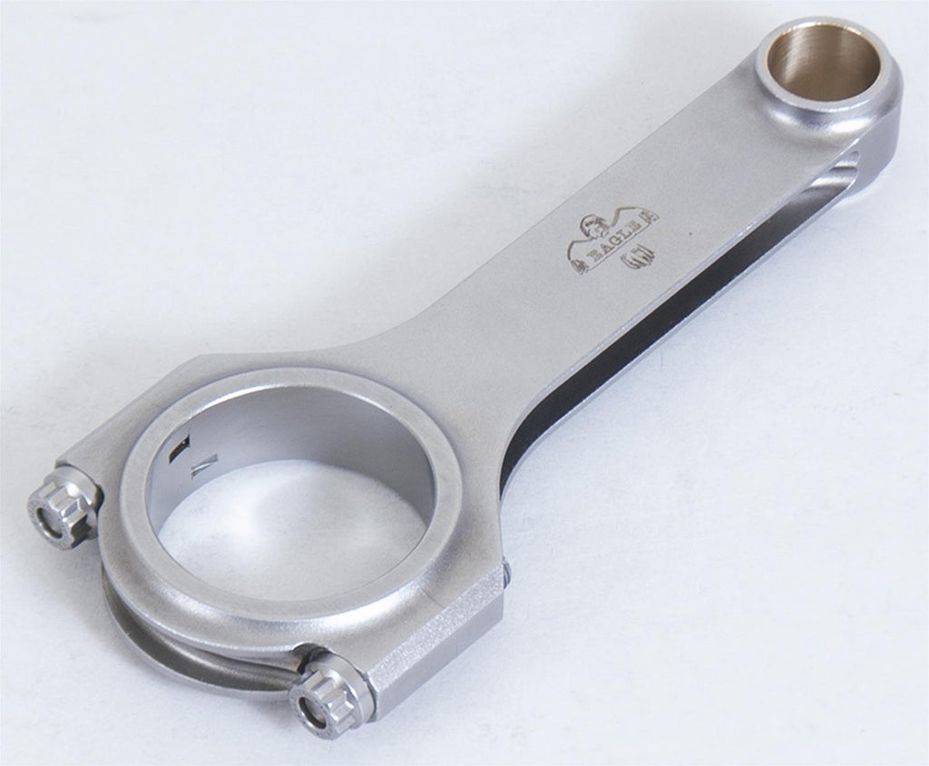 Free your engine's horsepower on the wings of Eagle H-beam connecting rods. Their 2-piece, forged, vacuum-degassed, 4340-certified steel construction provides outstanding strength, while still weighing much less than stock rods. Each rod is multi-stage heat-treated, X-rayed, sonic-tested, magnafluxed, 100 percent machined, and then shot-peened to stress-relieve the metal.