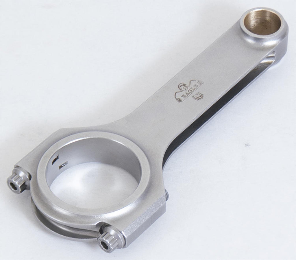 Free your engine's horsepower on the wings of Eagle H-beam connecting rods. Their 2-piece, forged, vacuum-degassed, 4340-certified steel construction provides outstanding strength, while still weighing much less than stock rods. Each rod is multi-stage heat-treated, X-rayed, sonic-tested, magnafluxed, 100 percent machined, and then shot-peened to stress-relieve the metal.