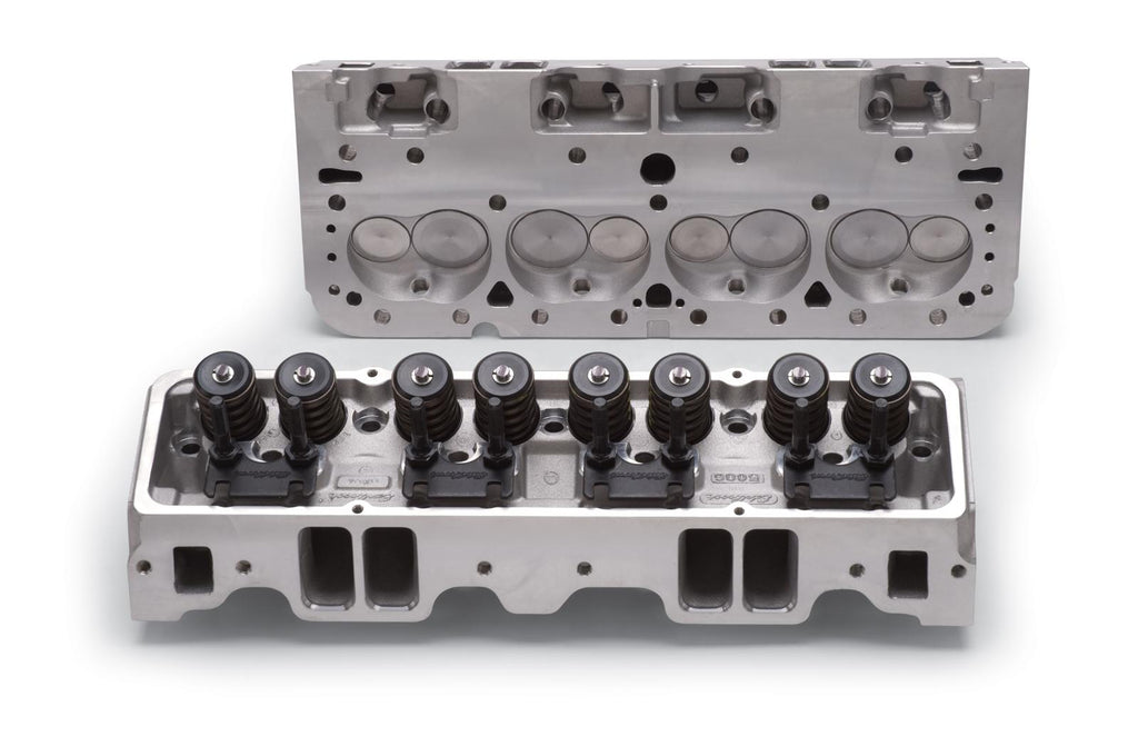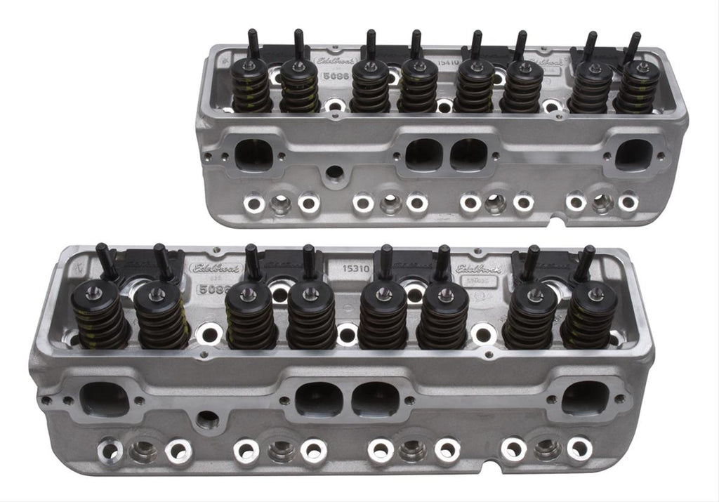 Step up to race-level performance with OEM compatibility using these Edelbrock E-Series E-210 aluminum cylinder heads. They feature larger runners for increased airflow, revised exhaust ports, and larger diameter springs for higher lift camshafts--perfect for spec series racers and large-displacement engines. Available bare or assembled, E-210 cylinder heads allow you to use off-the-shelf headers and hardware. Forget those overseas castings; go with quality, economy, and performance. Go with Edelbrock E-Series E-210 cylinder heads.Brand: Edelbrock