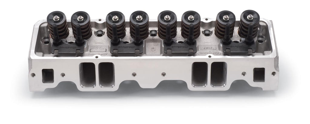 Step up to race-level performance with OEM compatibility using these Edelbrock E-Series E-210 aluminum cylinder heads. They feature larger runners for increased airflow, revised exhaust ports, and larger diameter springs for higher lift camshafts--perfect for spec series racers and large-displacement engines. Available bare or assembled, E-210 cylinder heads allow you to use off-the-shelf headers and hardware. Forget those overseas castings; go with quality, economy, and performance. Go with Edelbrock E-Series E-210 cylinder heads.Brand: Edelbrock