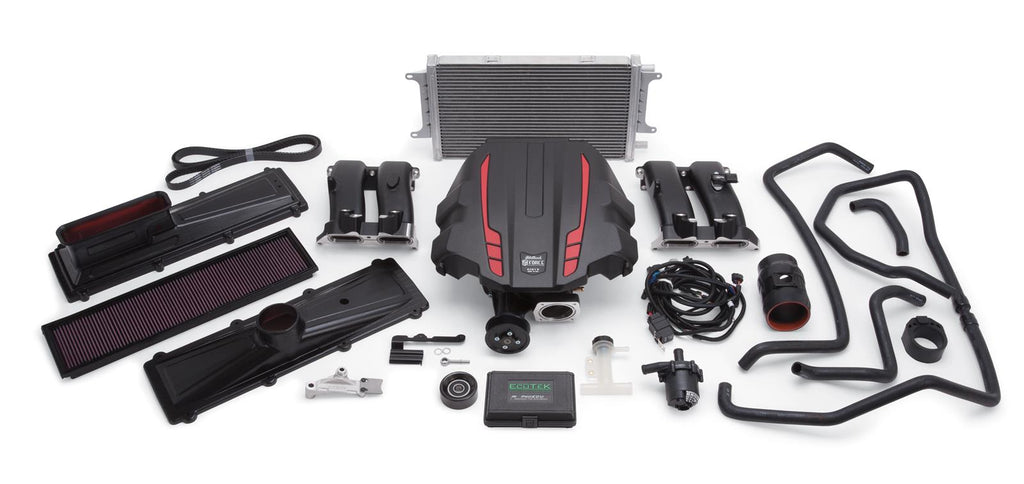 Edelbrock E-Force FR-S and BRZ Supercharger kits have finally arrived for your 2.0L equipped FR-S and BRZ. These kits are designed exclusively for the FA20/4U-GSE engine. The unique inverted design features long runners that allow for maximum flow at high rpm, while retaining great daily driving characteristics. The superchargers have been designed from the ground-up and utilize Eaton 1320 TVS rotor assemblies for maximum efficiency in a compact package. As with all Edelbrock E-Force superchargers, these systems feature an efficient high-flow inlet configuration that results in a shorter, less restrictive intake path for improved airflow and performance. A large dual pass air-to-water intercooler and heat exchanger cool the incoming air. All of these features help the E-Force supercharger to deliver dramatically improved performance—especially in the mid-range, where power dips have been eliminated for a smooth linear power curve. Lastly, each supercharger assembly is finished in a durable black powdercoat with red accents for a unique look that will let everyone know your car is E-Force powered! Kits are available with or without tuner. Order the model recommended for your vehicle.