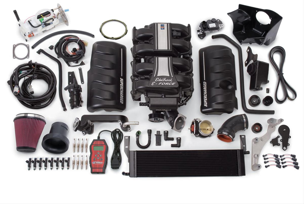 Edelbrock E-Force TVS2300 Mustang Stage 2 track system supercharger kits will transform your Mustang into a force to be reckoned with! The kits utilize Eaton's Gen VI TVS2300 supercharger rotors, featuring a four lobe design with a full 160 degrees of twist for maximum flow, minimum temperature rise, quiet operation, and the reliability for which Eaton is known. They feature minimum air restriction in and out of the supercharger, along with individual long intake runners for maximum low end torque for great off throttle performance. Claim the track with the added influence of these E-Force supercharger kits from Edelbrock.Brand: Edelbrock