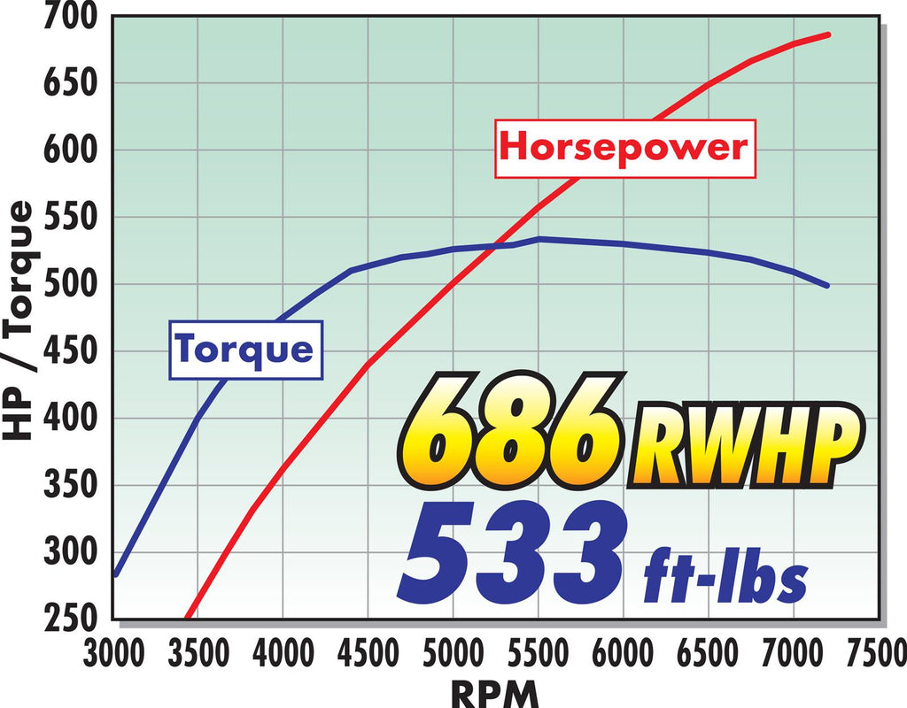 Notes: Kit features Eaton's R2650 rotor group along with Edelbrock's dual-pass 3-core intercooler. Also includes a 103mm throttle body, high-flow 113mm air intake system, 8-Rib Belt Drive, upgraded port fuel injectors and a fuel pump voltage booster.
